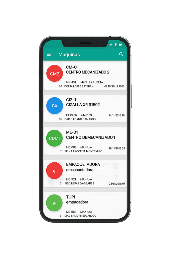 Podrás consultar el “Timeline” de cada máquina y los tres parámetros necesarios para el cálculo de la eficiencia de cada equipo (OEE).